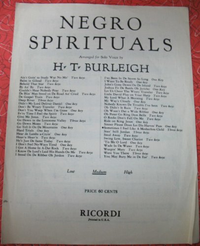 For your consideration, here is a copy of sheet music for: Sometimes I Feel Like A Motherless Child, Negro Spirituals arranged for Solo Voice by H.T. Burleigh - Medium. Published by Ricordi & Co., copyright 1918 -- 6 pages (page count includes covers).